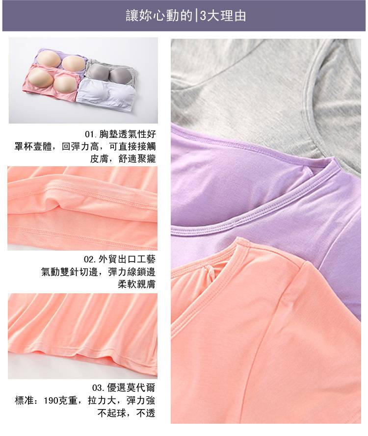 12分鐘前【廠家直銷 買一送一】夏季爆款莫代爾帶胸墊可外穿家居短袖,一體式無鋼圈設計,方便舒適,告別鋼圈束縛,柔軟莫代爾面料,不舒服包退!限時售價!買到賺到 - 【買一送三】任選4件 均價299